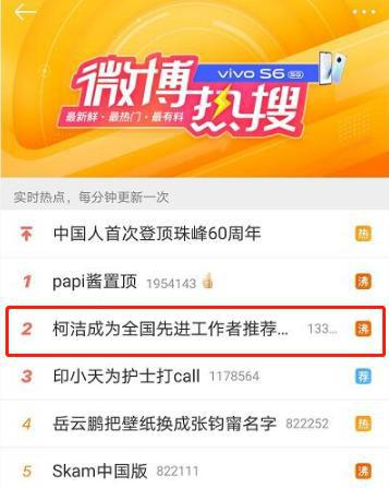 图说:柯洁因此还登上了热搜 微博截图