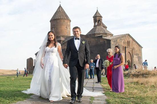 阿罗尼扬与考伊莉2017年在亚美尼亚13世纪的教堂举行了婚礼。亚美尼亚总统出席了婚礼。这对郎才女貌的完美夫妇的每张照片都散发着幸福的味道。