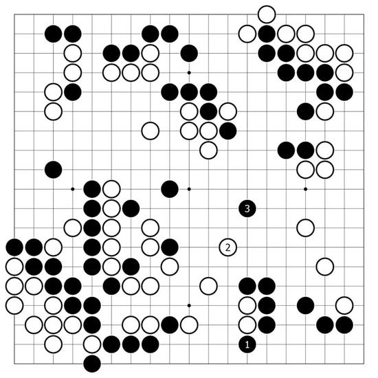 以AI视角下,黑右下角二路挡似缓。莫不如黑1、3两加简单获利整形后,再抢先从5、7位破白眼形。