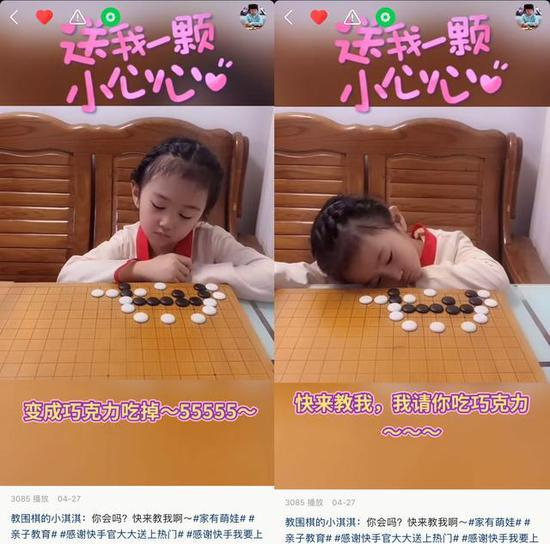 七岁的小淇淇也在快手上教围棋。姐姐是职业棋手,淇淇目前水平为业余1段,对她来说,粒粒饱满的棋子更像是黑白巧克力。分享好看的围棋动画片,总结自己的围棋入门心得,有这样一个可爱的初学者相陪,围棋入门之路想必会更顺畅些。