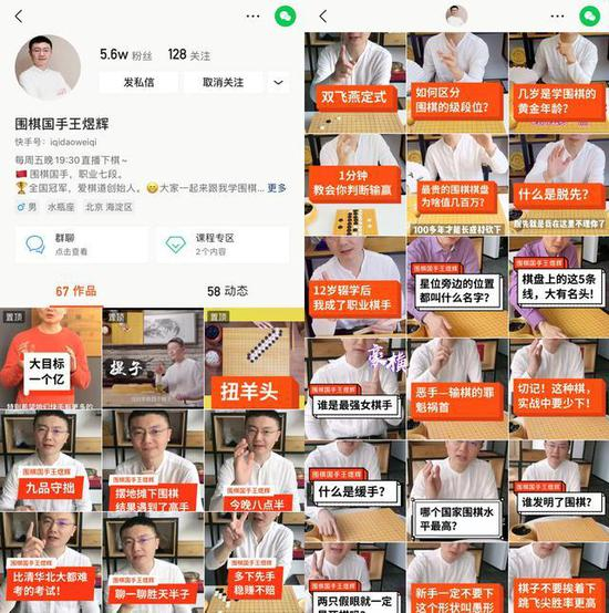 在王煜辉较早期的一条视频中,他也表达了自己开快手账号的初衷:“特别希望有更多的快手老铁来一起学围棋,学好围棋。”