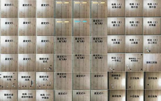 “谈玩小围棋”则主要面对高阶玩家,棋盘线路、布局、星定式按照顺序一章章铺开,点开对应视频有一步步对应的详解。182个作品工工整整的排列,仿佛是一部线上的武功秘籍。