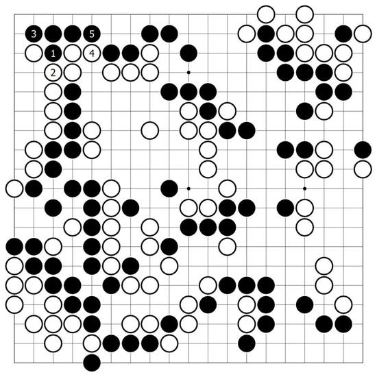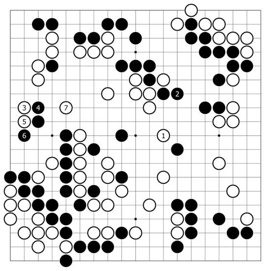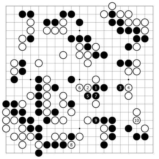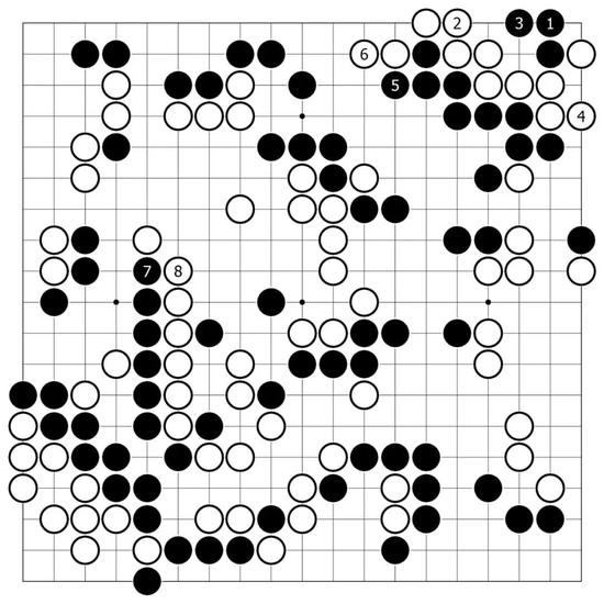 紧接着,白3、5从左边入手,顺势得到白7飞的扩张要点,这一带吴清源的处理手法积极而明快,在微妙的形势下逐渐闪出一个难以察觉的身位来。