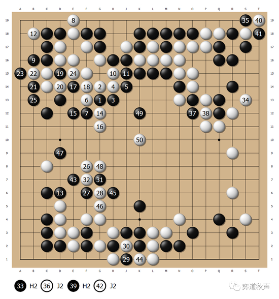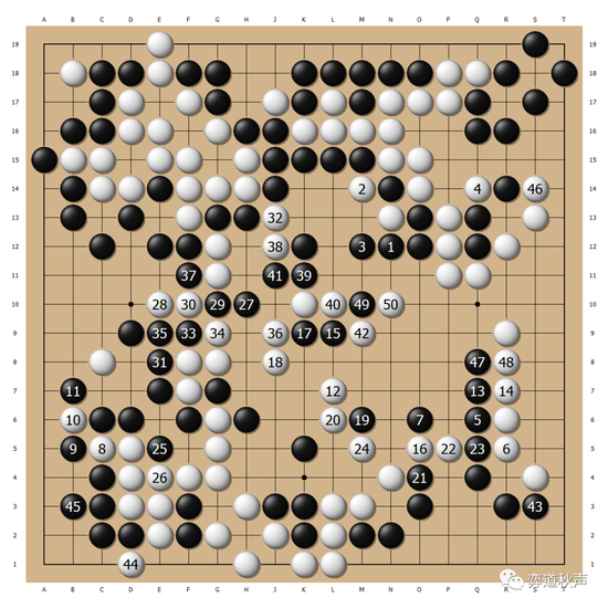 白48、50后,中腹潜力巨大,白棋重新确立优势。