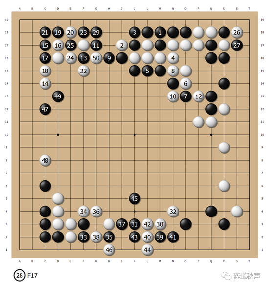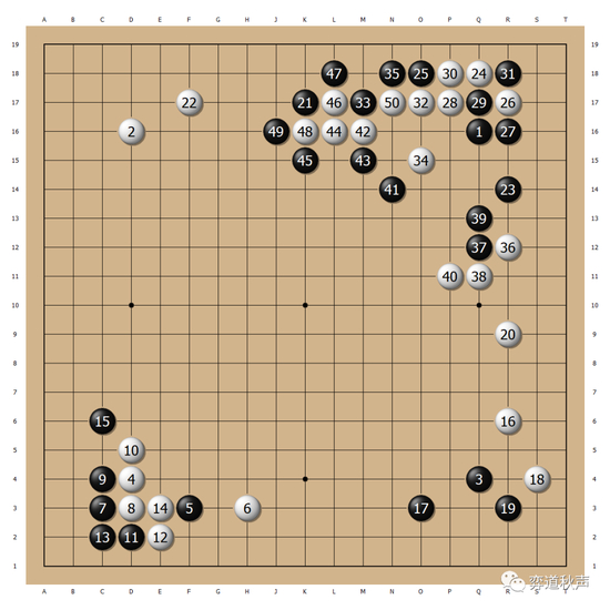 黑47逼住左上,白48也逼住左下,两人各不相让,局势开始混沌。