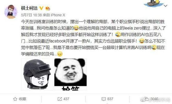 中国棋士柯洁也发文表示:Leela Zero训练厉害了,我是不是也要攒钱买一台超级计算机来跑AI,现在学编程还来得及吗?