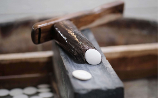 因为通过棋子进行相互间的心灵交流,所以围棋的别名又叫做‘手谈’,制作棋子的过程,亦是一种和石的对话。