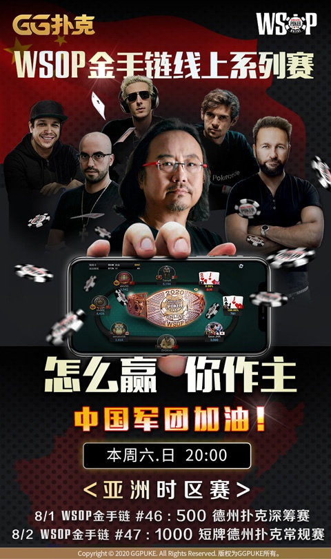 。还记得由中国玩家AARON WIJAYA夺下WSOP金手链#38: 600德州扑克6人桌超级深筹赛冠军金手链吗!本周六日将有两场“亚洲时区赛事时间”,同样在20:00准时开赛,期待国人再获得金手链荣耀!