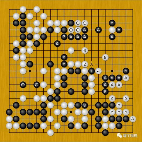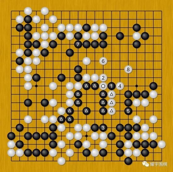 此图至白8的变化,我想以申旻埈的计算力,在实战中肯定是很快看到了,而且我相信申旻埈年少气盛,肯定很想选择此图的下法。