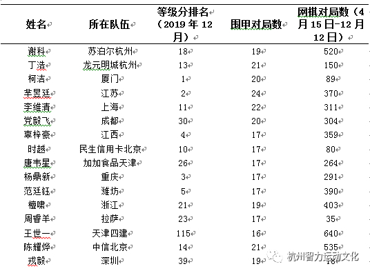 表4.2019赛季围甲队棋手网络对局量