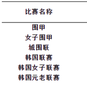 表1。 中韩围棋联赛比赛规模列表
