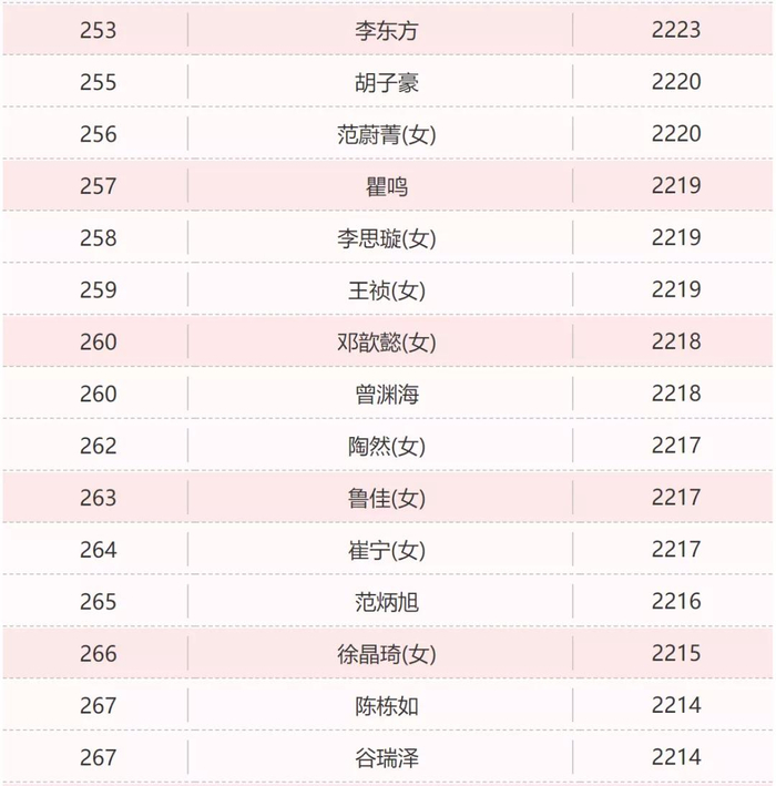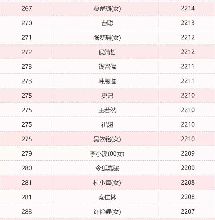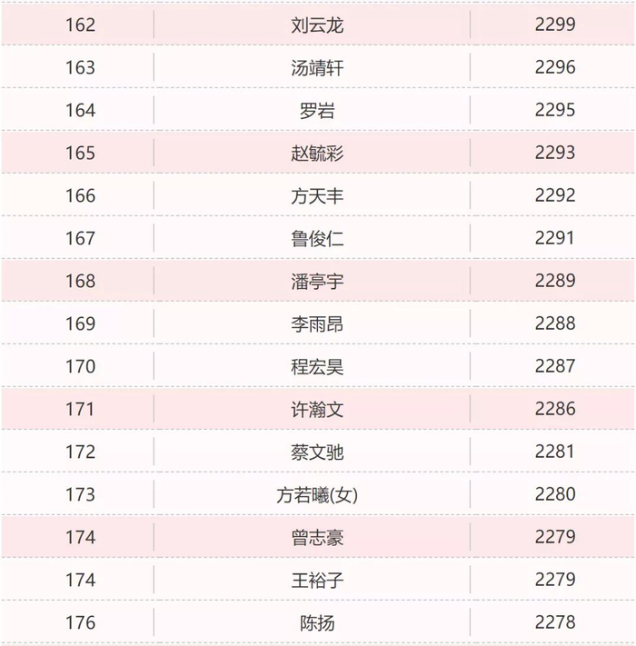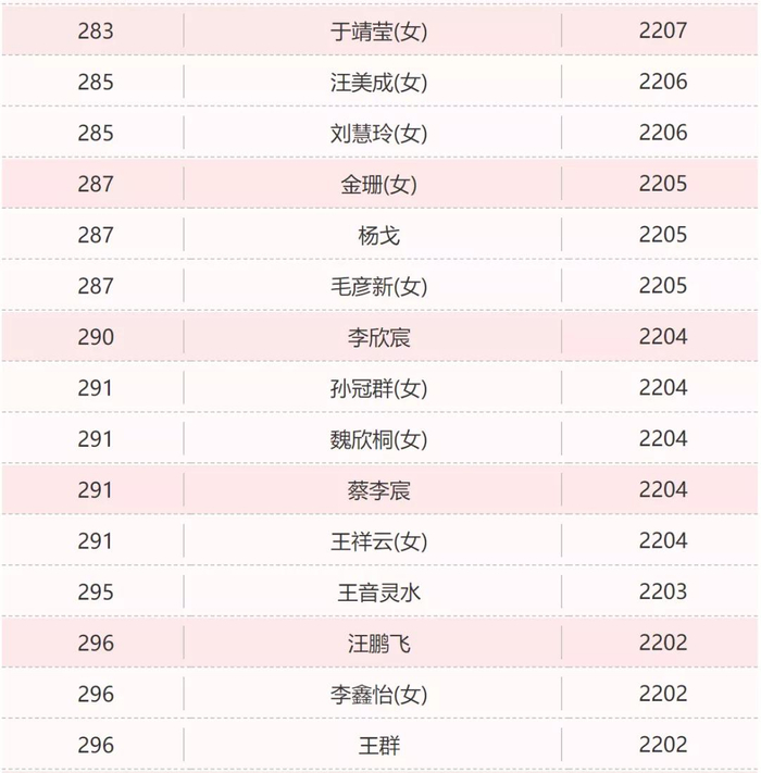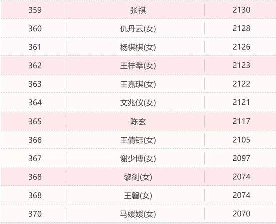 未列入名册的有等级分棋手(不活跃棋手)名单: