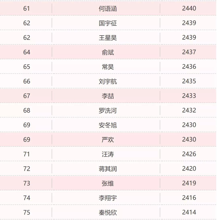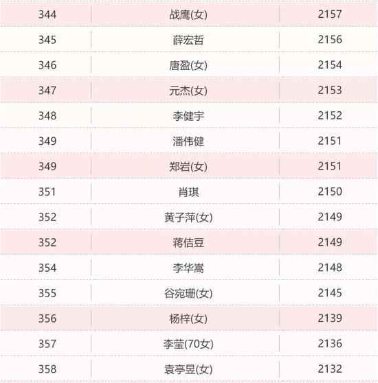 时 越 2597.9 ---- 胡耀宇 2486.4 3.5 2020/8/30 围甲联赛