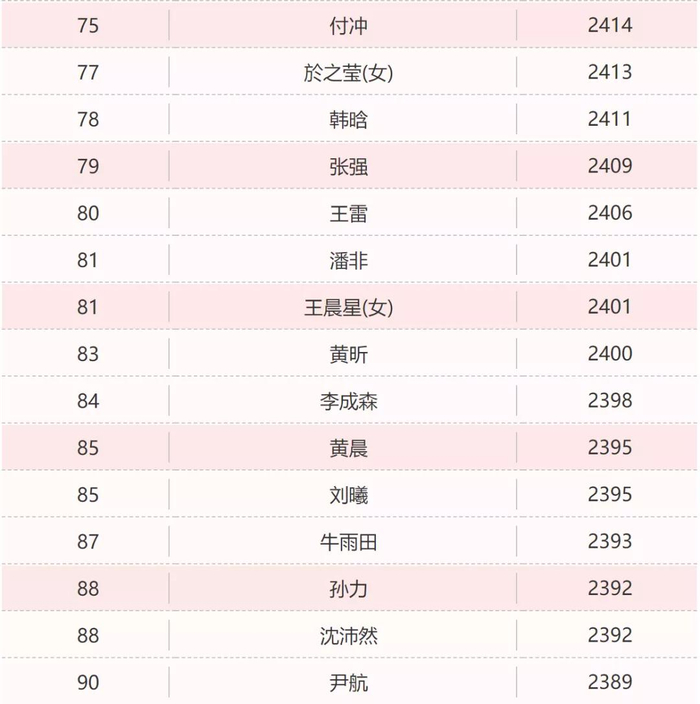 辜梓豪 2661.9 ---- 韩4-7 2619.4 4.4 2020/8/30 围甲联赛