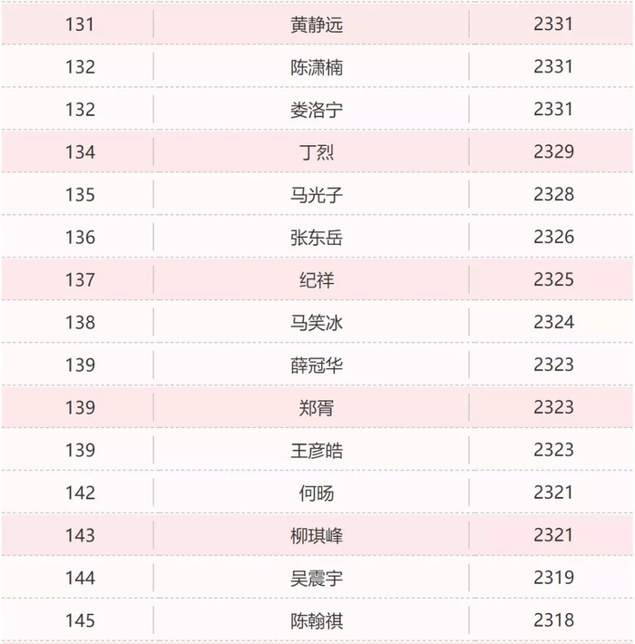 屠晓宇 2471.0 ---- 李雨昂 2290.2 2.6 2020/8/31 围甲联赛