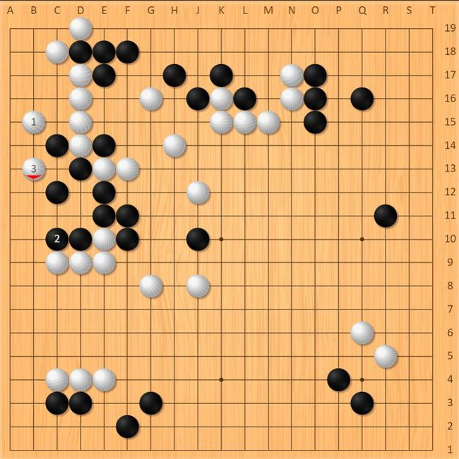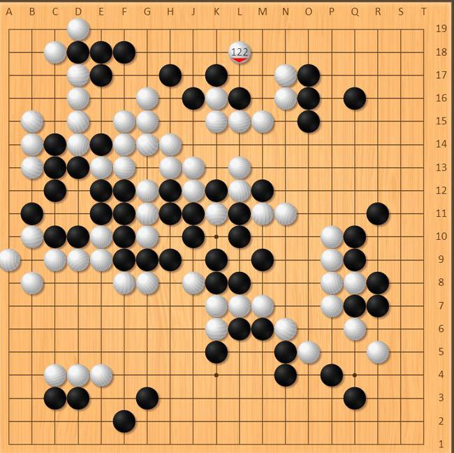 黑棋做活之后,白棋抢先收官。122是极大的一手,此手若落于J18对黑棋是一个不小的考验,稍有不慎就可能全军覆没,不过实战白棋选择了更为稳妥的收束方式,通过威胁黑棋上方间接破掉黑棋右边的实地。