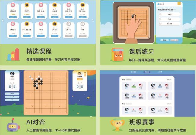 聂卫平围棋道场深耕围棋教育二十载,精心打磨出专业规范的N1-N9自有进阶式课程体系,全新的课程产品设计依然基于该课程体系,将教学场景从线下延伸至线上。其中,线下课程采用4-8人小班授课,通过“故事线”与知识点的结合,形成趣味互动,同时使用智能一体化设备,保存并上传学员对局棋谱,帮助学员精准复盘。线上课程则根据不同课程等级安排知识点练习或复盘,对线下所学知识进行练习。课后还可灵活调整学习时间,通过“聂卫平围棋网校APP”进行课后作业、每日对局巩固所学内容,还可参与班级赛事、棋力测试,周期性检验学习成果,相应数据也将同步上传至授课教师端,老师可及时了解学员学习进度及效果。线下教学内容更具针对性,而线上则可充分利用碎片化时间,两者在内容、时间、空间上的融合互补,使学习形式更为丰富多元,实现线下学,线上练,充分提高学习效果。