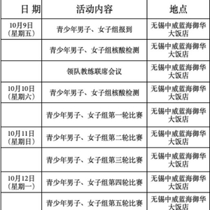 备注:各组轮次数以开赛前公布的竞赛补充规定为准