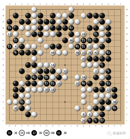黑29、31顽强拼劫,无奈劫材不足,最终还是黑41粘回了。