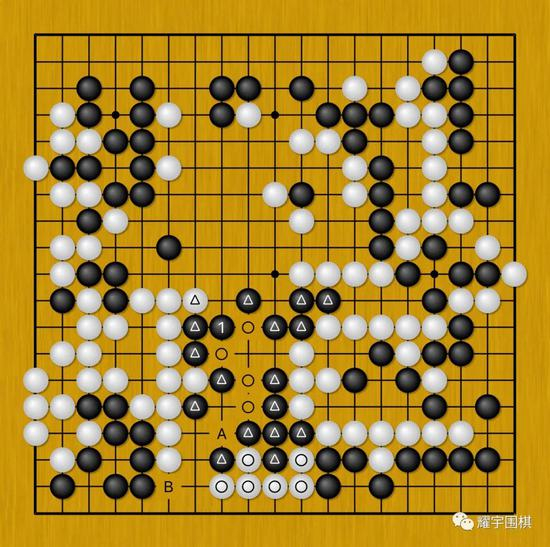 可以说,柯洁的算盘打得很精,在自己难以选择A、B两点如何下的时候,先反问白棋,然后根据白棋的出招,再决定自己如何选择。