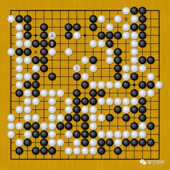 图2:白178(白三角一子)拐的时候,黑1顶着应对看似正常,却是疑问手。
