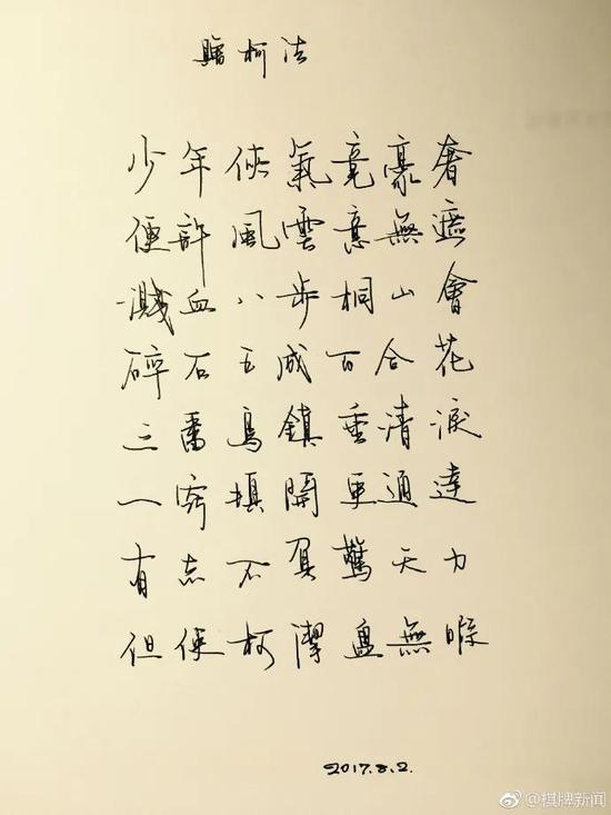 话表当今棋坛,有一少年,他年少成名,顶戴八冠……有诗赞曰: