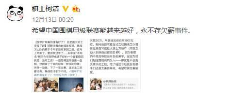 为棋手欠薪问题发声、为家乡地震捐款、在网上分享赛前赛后的心情、上围棋学校去普及推广,将名字改成“棋士”的柯洁说,“我就希望啊,以后人们说起来柯洁这个人,大家说这个人除了嘴巴大点,其他做的事情还蛮地道的,我就挺满意的了。”