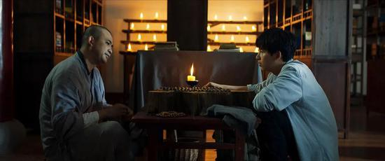刘畅:在第三稿剧本中,这个角色就已经存在了,因为我们觉得时光从弈江湖道场出来直接通过定段赛会有一些着急,大节奏上会不舒服,就原创了兰因寺的情节。而且既然故事本身有点玄幻色彩,设置这样的一个寺庙,里面有一些会下棋的高僧,和故事本身气质还挺贴的,所以修改剧本的过程中,逐渐把兰因寺的戏加得重了一些。另外我也会觉得,如果全剧从头到尾真的只有时光能看见褚嬴的话,对于这一段人物关系展开的视点相对会有些单一。这么独特的一对人物关系,如果没有第三方视角能看到,会觉得有点可惜。