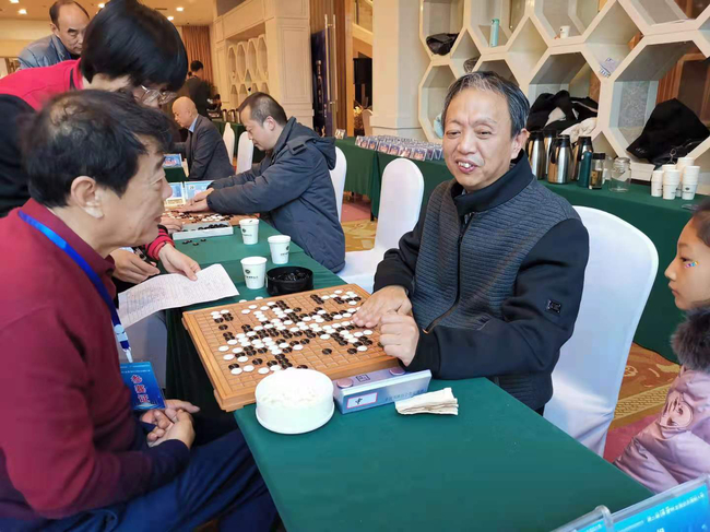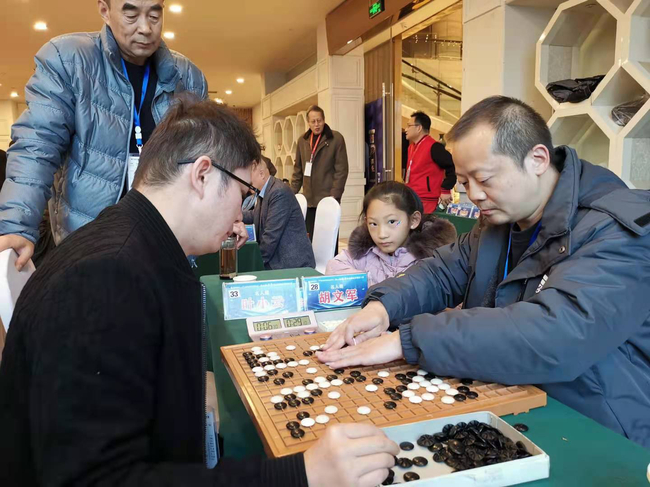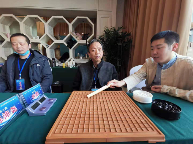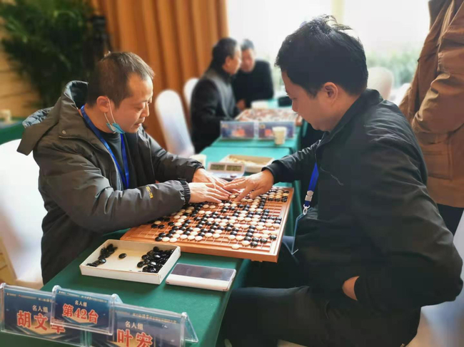 另一位“盲侠”胡文军上午对阵慕道围棋俱乐部顾问叶宏,双方比拼官子胡文军不幸超时,当时已战至1目小官子阶段局面细微,叶宏高风亮节示意续弈,最终盘上一个有眼双活,胡文军执黑184.5子险胜1/4子。下午胡文军力克新疆棋牌协会副主席叶小云,取得第3胜。“最强大脑”鲍橒全程督战,并为两位盲人选手仔细复盘。