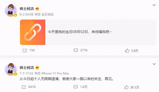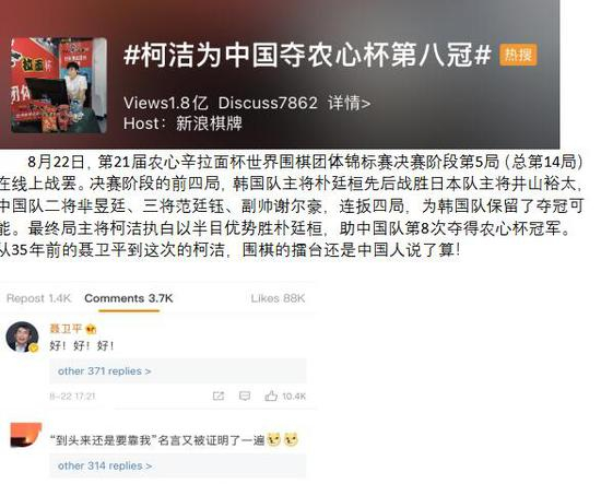 当前柯洁微博截图