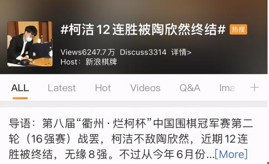四、#柯洁12连胜被陶欣然终结#