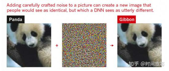 人工智能和深度学习领域中,有一个研究领域叫对抗攻击(Adversarial Attack),大概的意思就是想办法对输入的图片进行一些微小的变动,就可以让模型识别错误,例如下图。