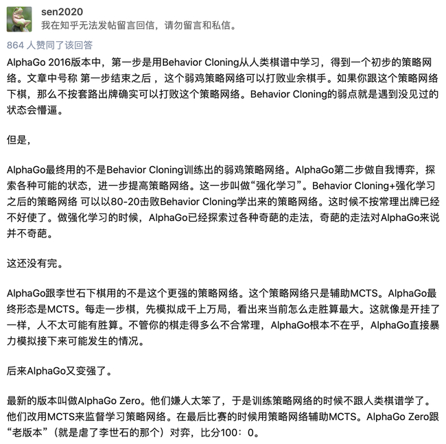AlphaGo 2016版本中,第一步是用Behavior Cloning从人类棋谱中学习,得到一个初步的策略网络。文章中号称 第一步结束之后 ,这个弱鸡策略网络可以打败业余棋手。如果你跟这个策略网络下棋,那么不按套路出牌确实可以打败这个策略网络。Behavior Cloning的弱点就是遇到没见过的状态会懵逼。