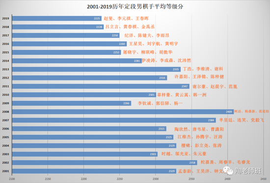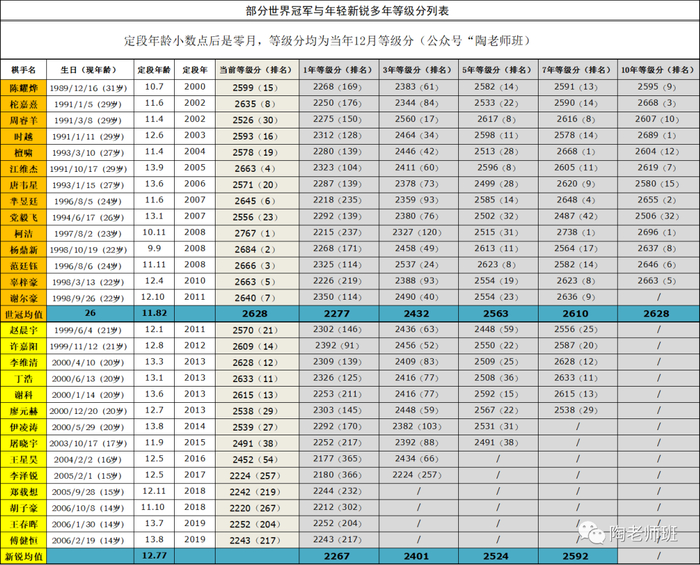九零后的十三位世界冠军+豹子头陈耀烨与新锐棋手的等级分递进图