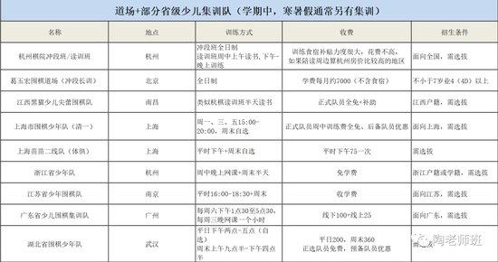 只是部分省级集训队的资料,另有些市级的,个别地方棋院也会搞半日制集训。如果是免费或明显低于市场价,基本有当地棋协补贴或企业赞助。在杭棋跟各地集训队的夹击下,葛道冲段能坚持办也很不容易了。