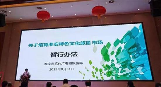 ▲市文化广电和旅游局党委委员王贻文作“运河情 淮扬味 掼蛋风”主题产品推介并发布《关于培育淮安特色文化旅游市场暂行办法》
