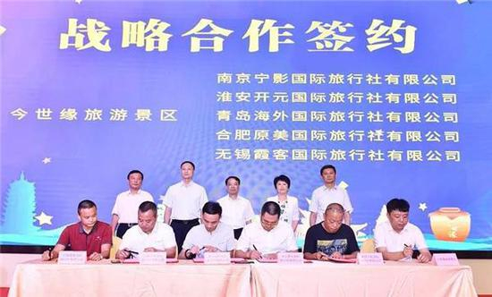 ▲旅行商与今世缘旅游景区签订战略合作协议