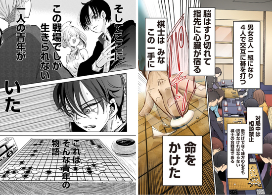 与《棋魂》的单打独斗不同,《群舞的双人围棋》是以“混双”为主题的青春故事,混双即男女两人一组轮流行棋,四个人共同完成一局棋,比起孤军作战,混双无疑增加许多趣味元素。