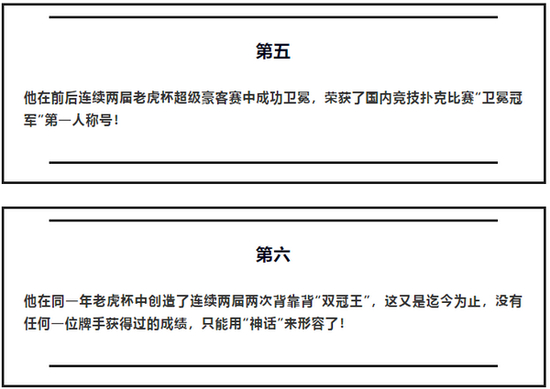 连续两届老虎杯,连续两次背靠背成为“双冠王”,以这样的无敌方式成功卫冕老虎杯超级豪客赛冠军!以这样连自己都难以置信的方式一口气夺取了四个冠军,这样的经历足以让我终身都难以忘记了!!!