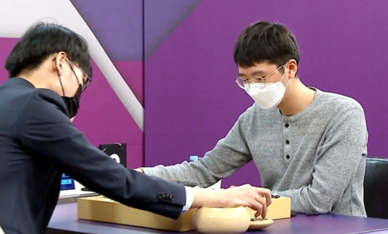 这是韩国排名第一和第三的沉重对决。时隔5年华丽复活的第44届SG杯名人赛于5日下午在K围棋演播室举行了胜者组16强赛中的一场。