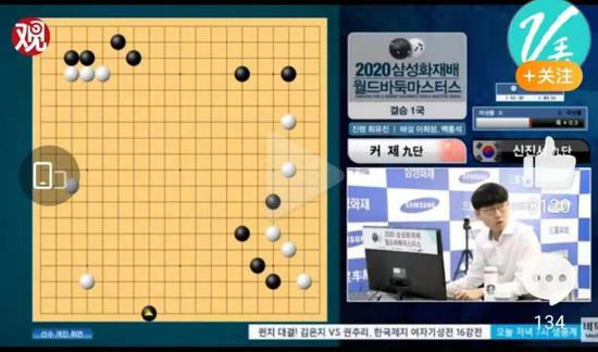 开始下棋后,宁毅将第一手棋下在了左上角一·一的位置,同样是一路围棋,这与三星杯决赛中申真谞的一路围棋有着本质的区别。
