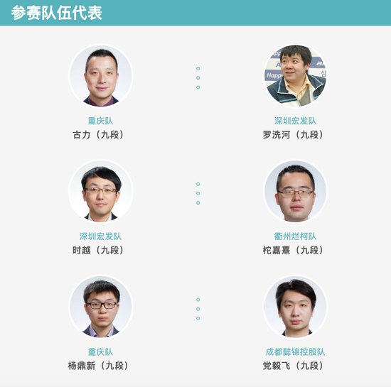 参赛队伍有重庆队,代表棋手为教练兼队员八冠王古力; 深圳宏发队,这是一支重新组合、重新冠名的队伍,教练由世界冠军罗洗河担任,世界冠军时越、等级分前十的陶欣然八段加盟,以及新锐力量戎毅七段,其抗衡强队的实力不容小觑;成都懿锦控股队,队中党毅飞曾获LG杯世界冠军,00后的廖元赫八段获得过第22届新人王冠军;最后是引进了世界冠军柁嘉熹的衢州烂柯队,共四支队伍进行巅峰对决。