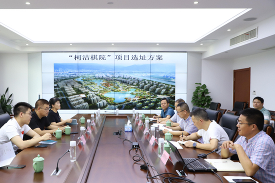在当天的座谈会上,市城投公司战略投资部介绍了“柯洁棋院”项目的三个意向选址方案,会后双方到意向选址点位进行了现场考察。