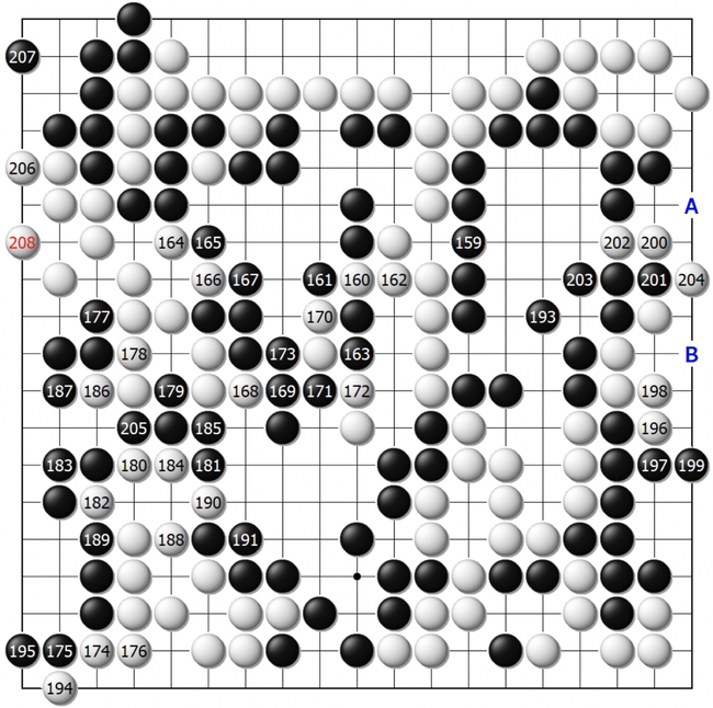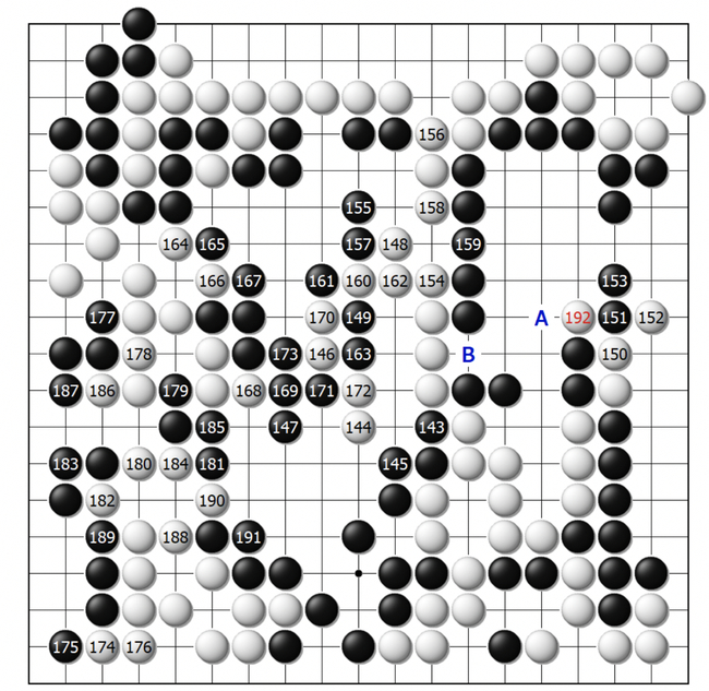 实战193选择了抱吃一子。白196,198局部有棋了。