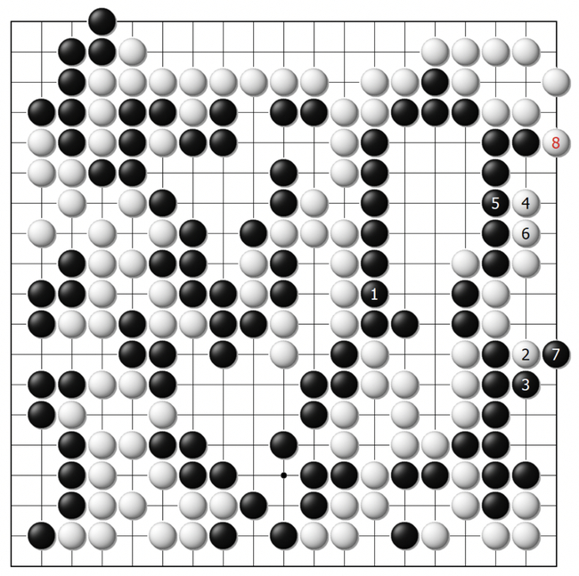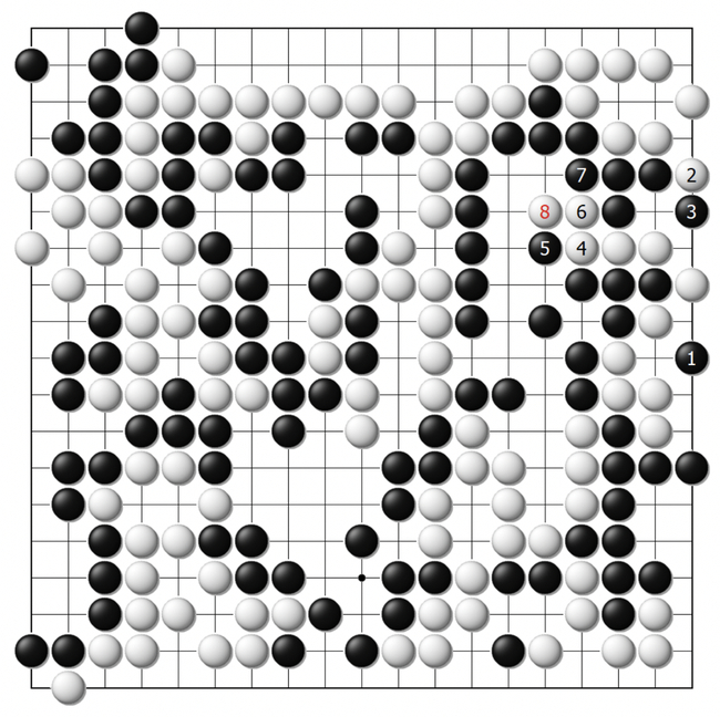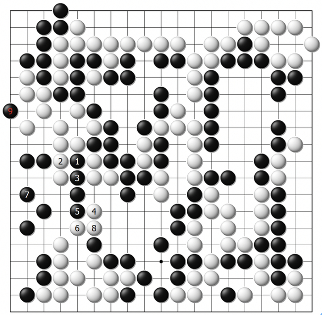 江维杰:我下棋的时候以为可以点,没看见白棋4,6,8冲了冲的下法,本图将形成打劫,黑棋不行。