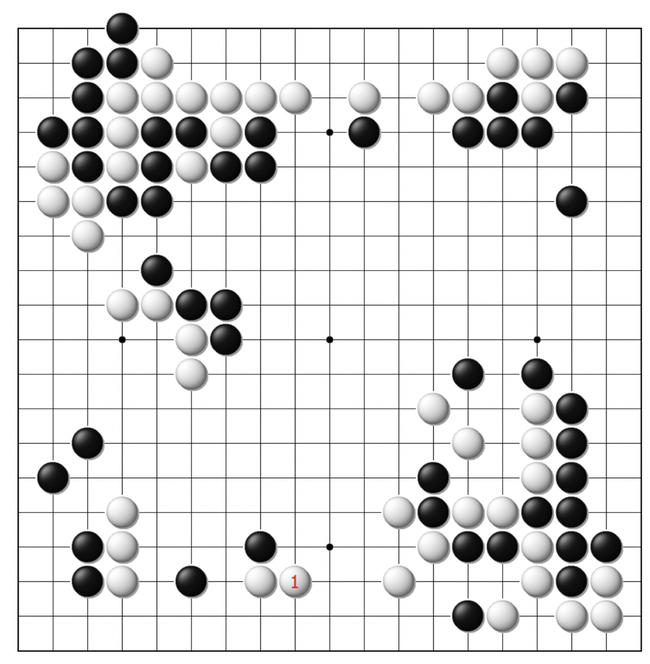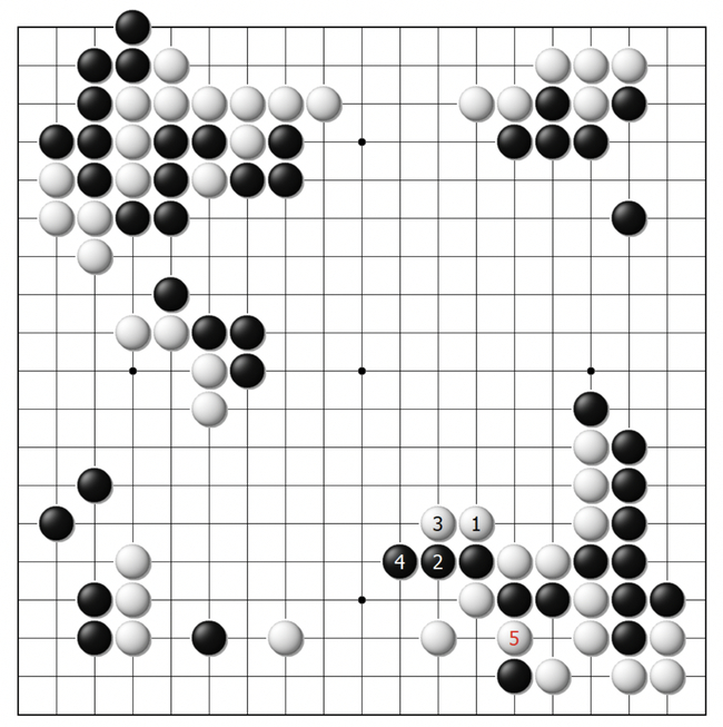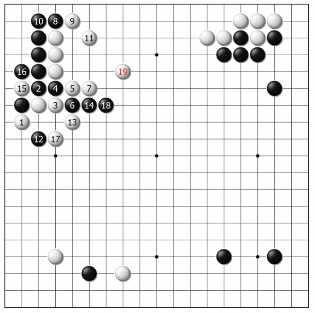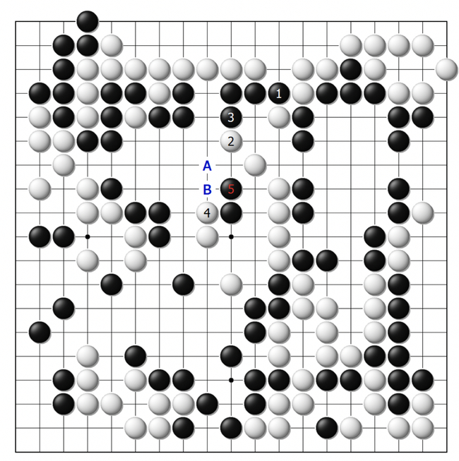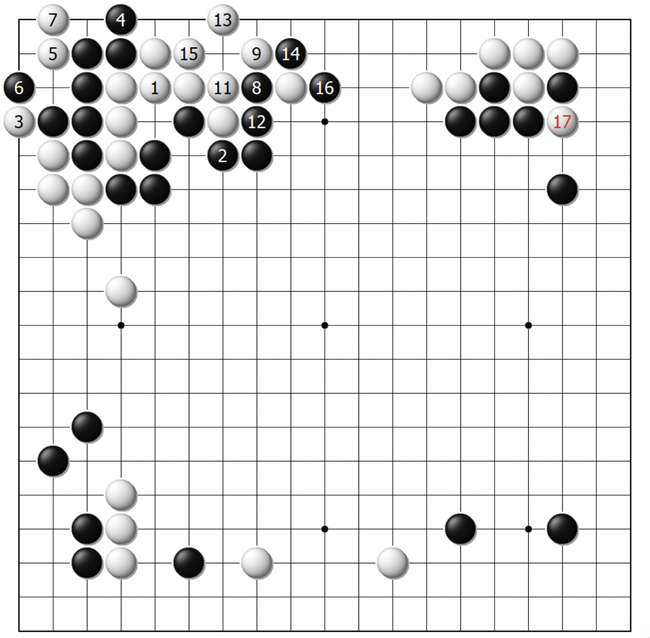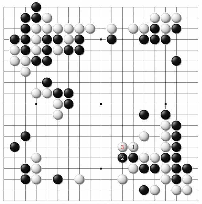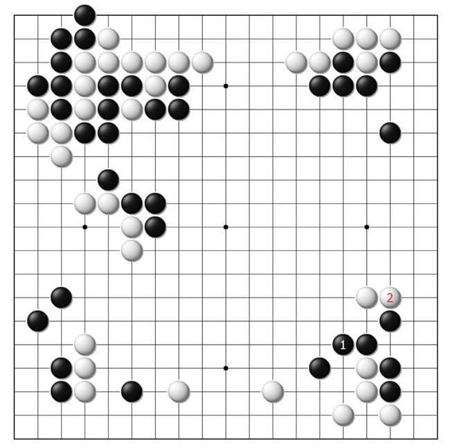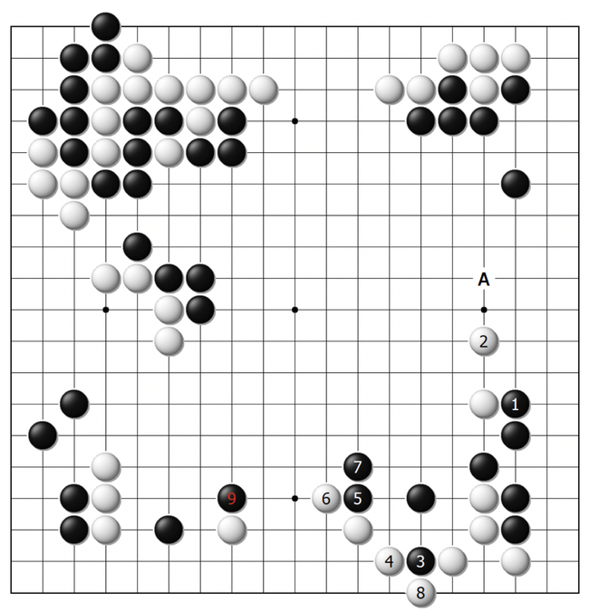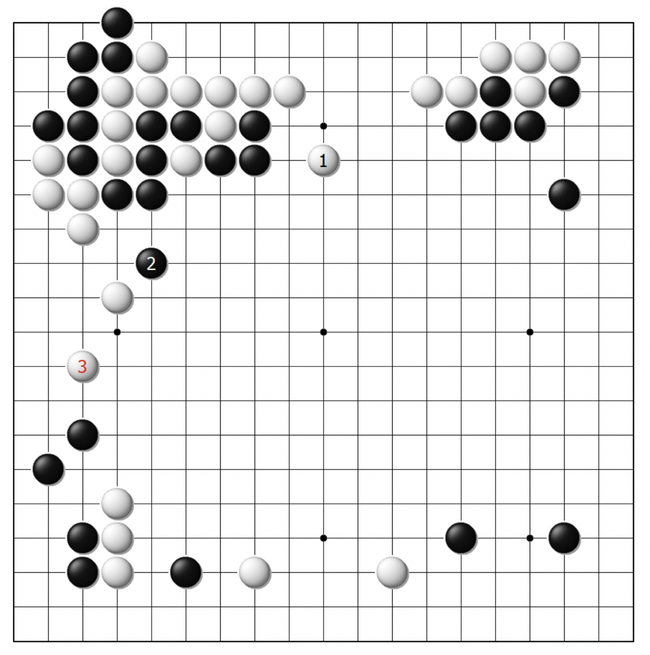 江维杰:白1有扳下的下法,我用AI摆过但是对局时记不清了。