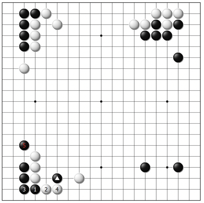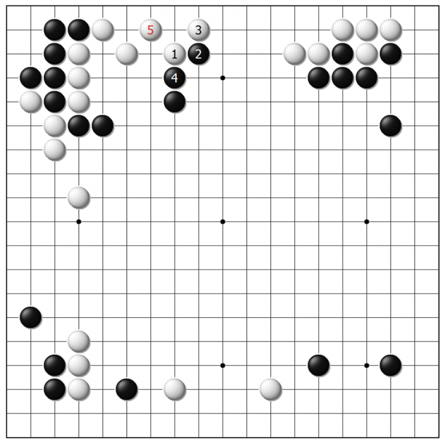 江维杰:AI推荐白棋1扳了3拆二,黑棋如果4跳,白棋可以5粘住。6以下黑棋虽然争得先手,但是却有先中后之感,毕竟角里黑棋还欠着半手棋。