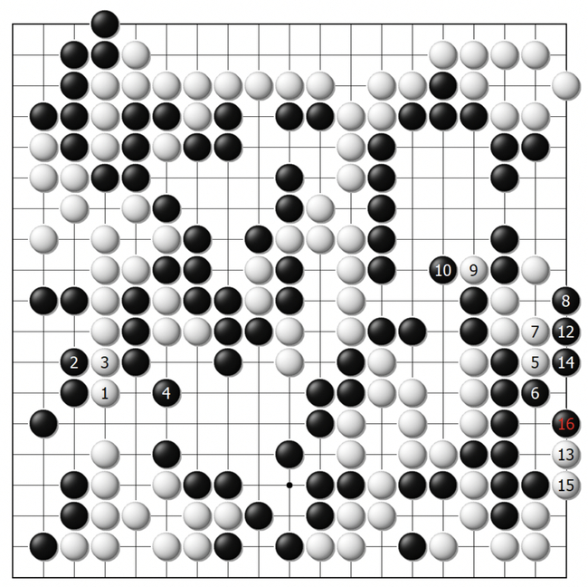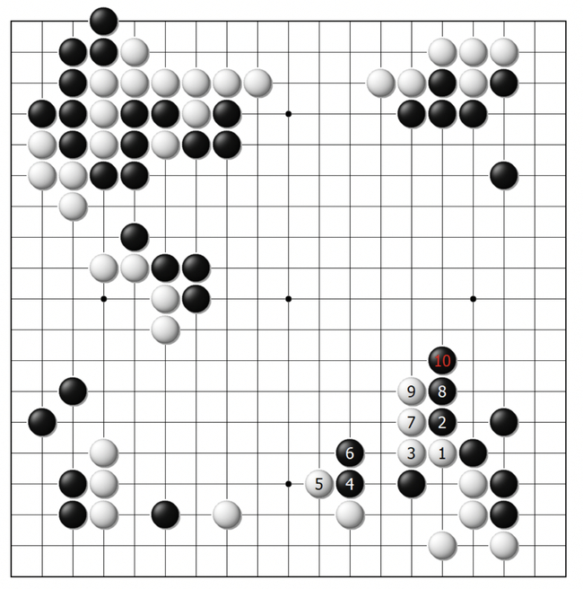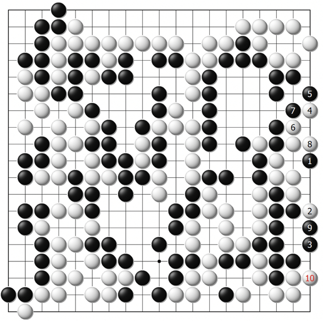 江维杰:白棋有4飞的妙手。以下至10局部是缓两气劫。
