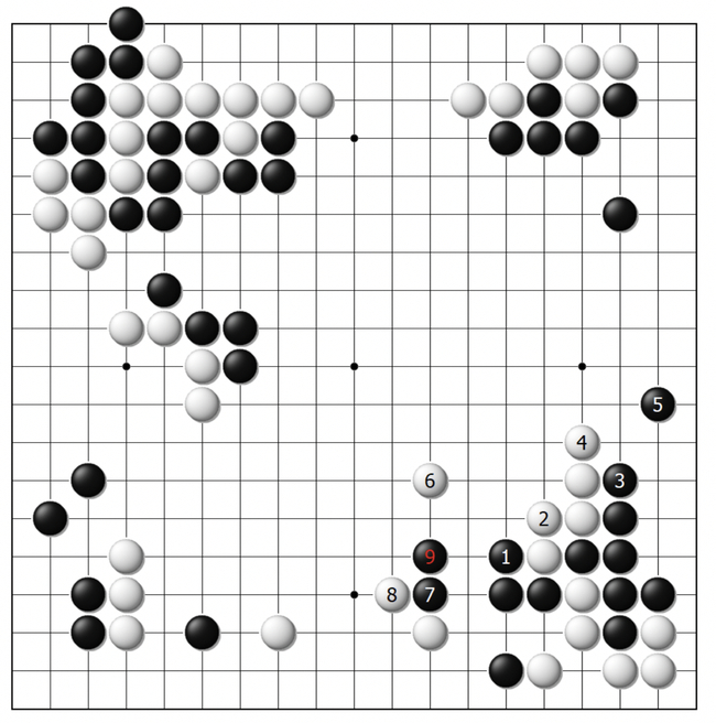 江维杰:黑棋应该1,3打了爬了飞出去,如此至9,感觉黑还可以。