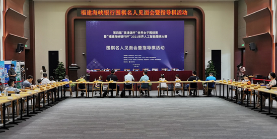 7月18日上午,第4届吴清源杯世界女子围棋赛暨福建海峡银行杯2021世界人工智能围棋大赛即将正式开赛之际,围棋名人见面会暨指导棋活动在位于福州的福建海峡银行总部举行。
